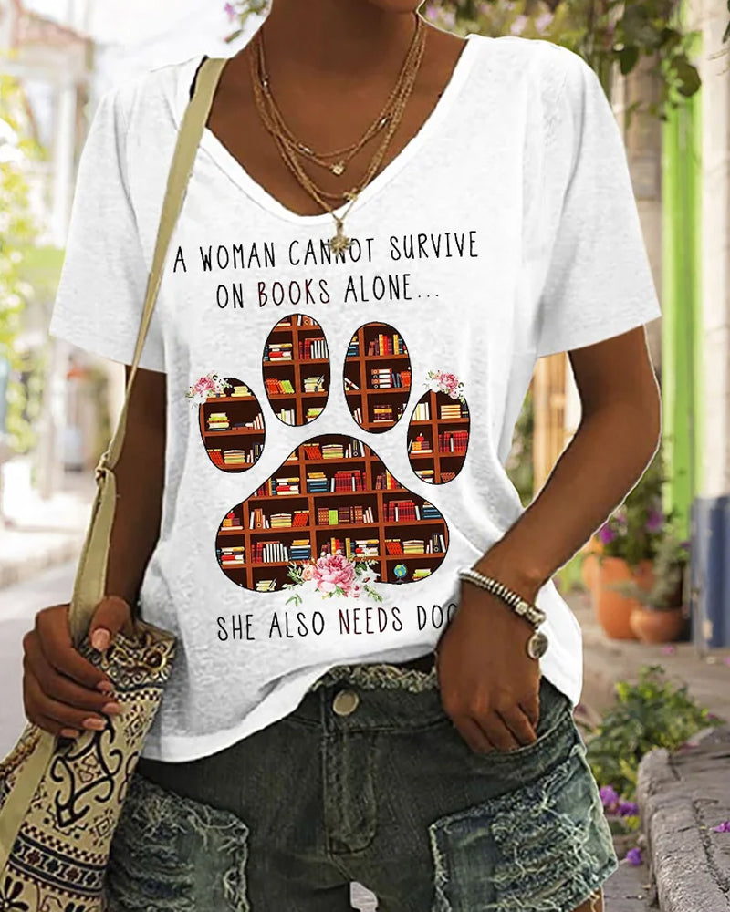 A Woman Cannot Survive On Books Alone - She Also Needs Dogs T-Shirt