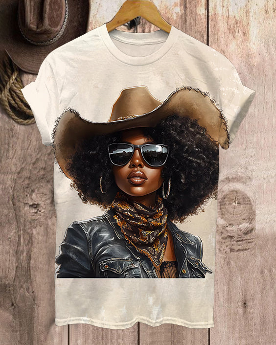 Afro Black Cow Girl Neck Short Sleeve Tshirt