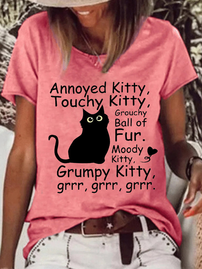 | Product Name | Annoyed Kitty Touchy Kitty Printed Crew Neck Women's T-shirt | ||
