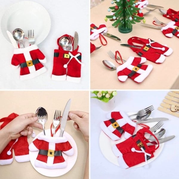 ⛄Very Cute & Festive 6 Pack Santa Claus Tableware Holder (3 * Santa Coats + 3 * Santa Pants)