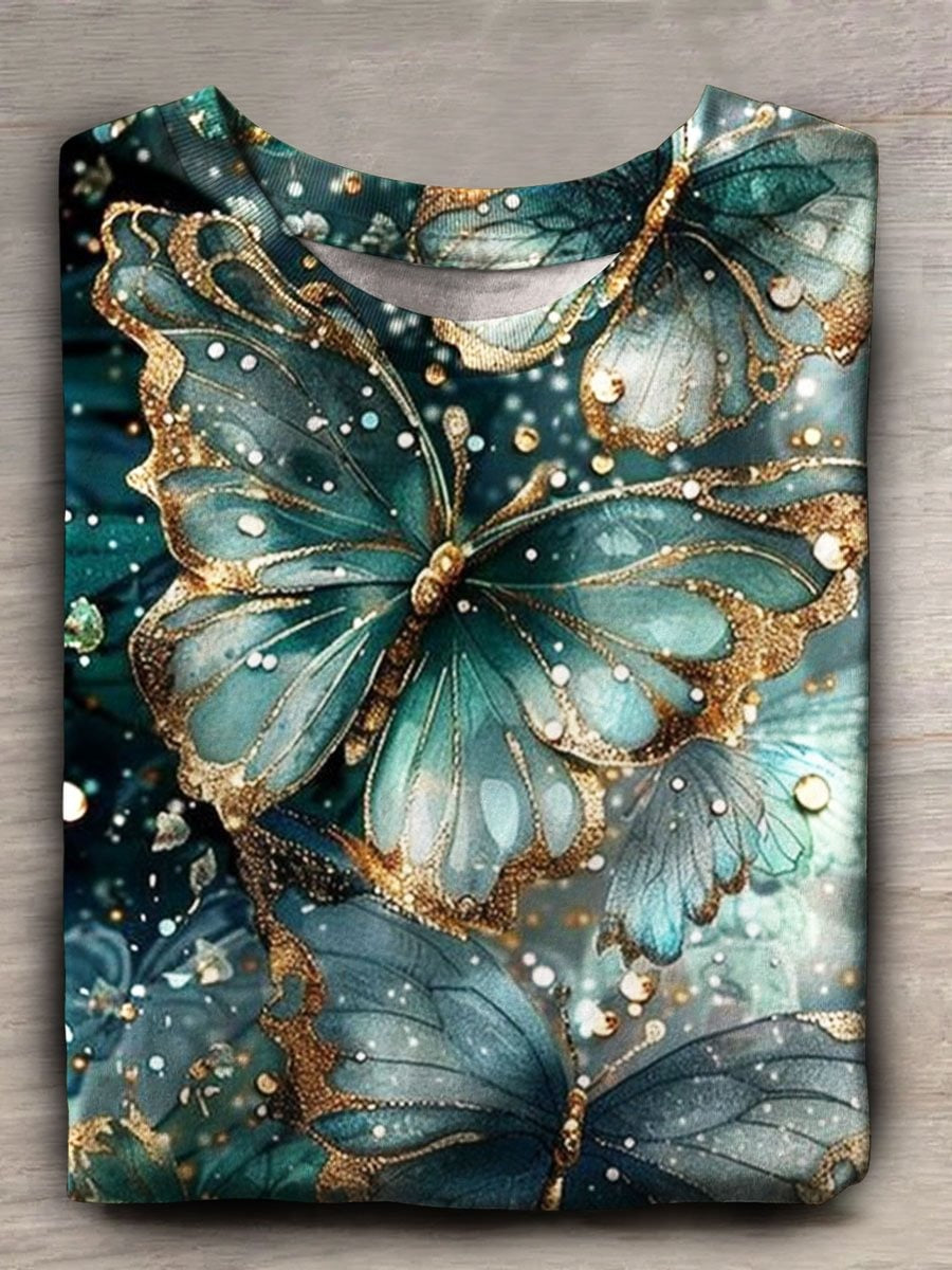 Butterfly Art Print Casual Short Sleeve Top