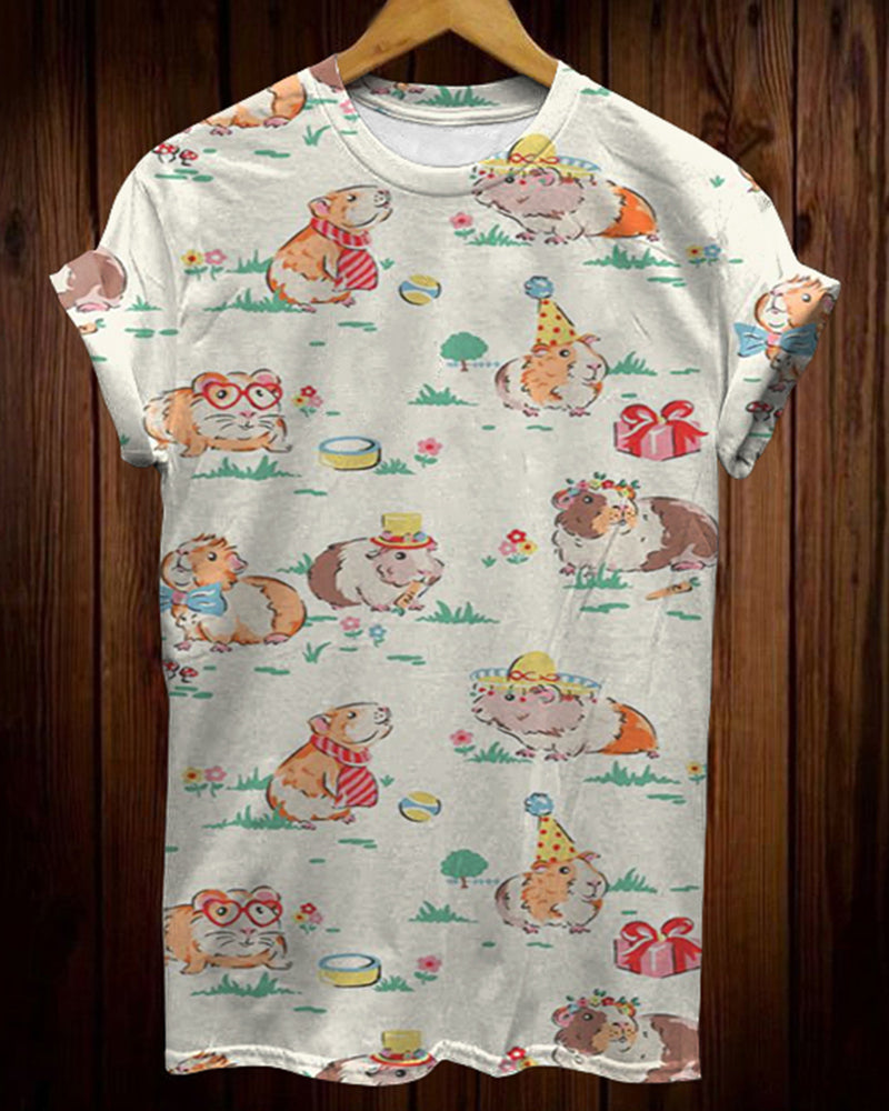 Cartoon Cute Hamster Print Round Neck Short Sleeve T-Shirt