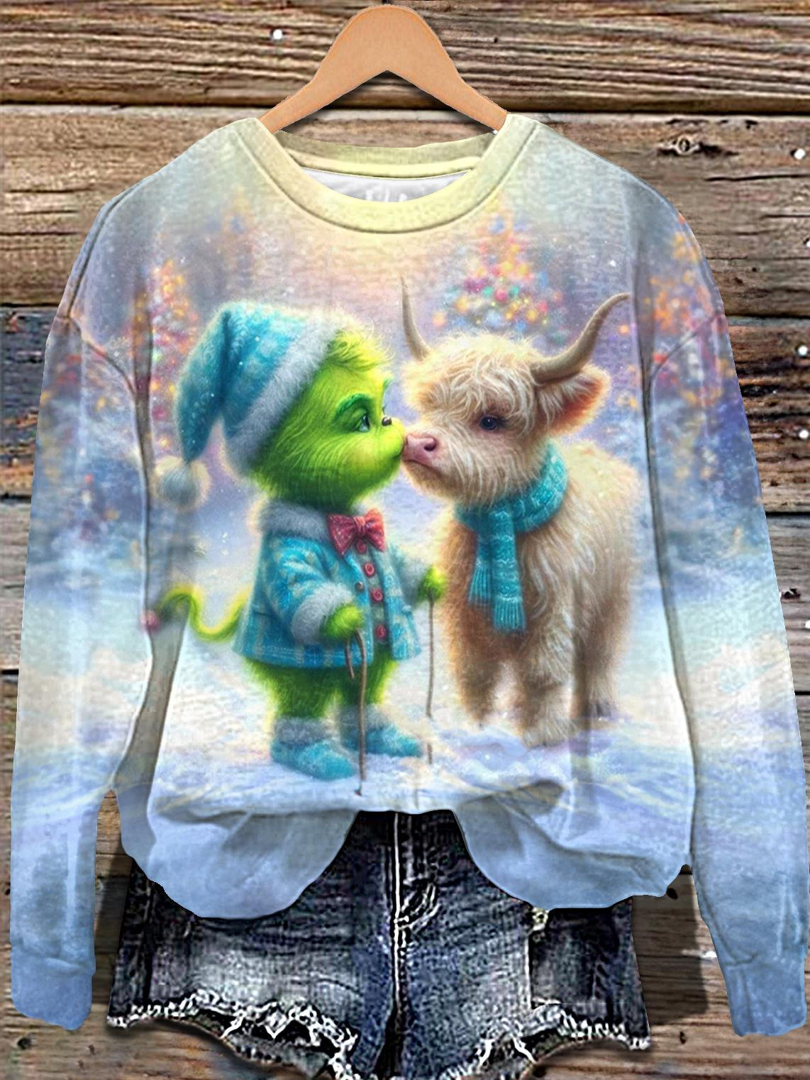 Christmas Cute Grinch Print Long Sleeve Casual Top