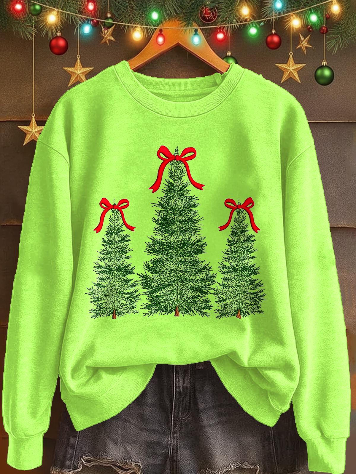 Christmas Tree Print Long Sleeve Casual Top