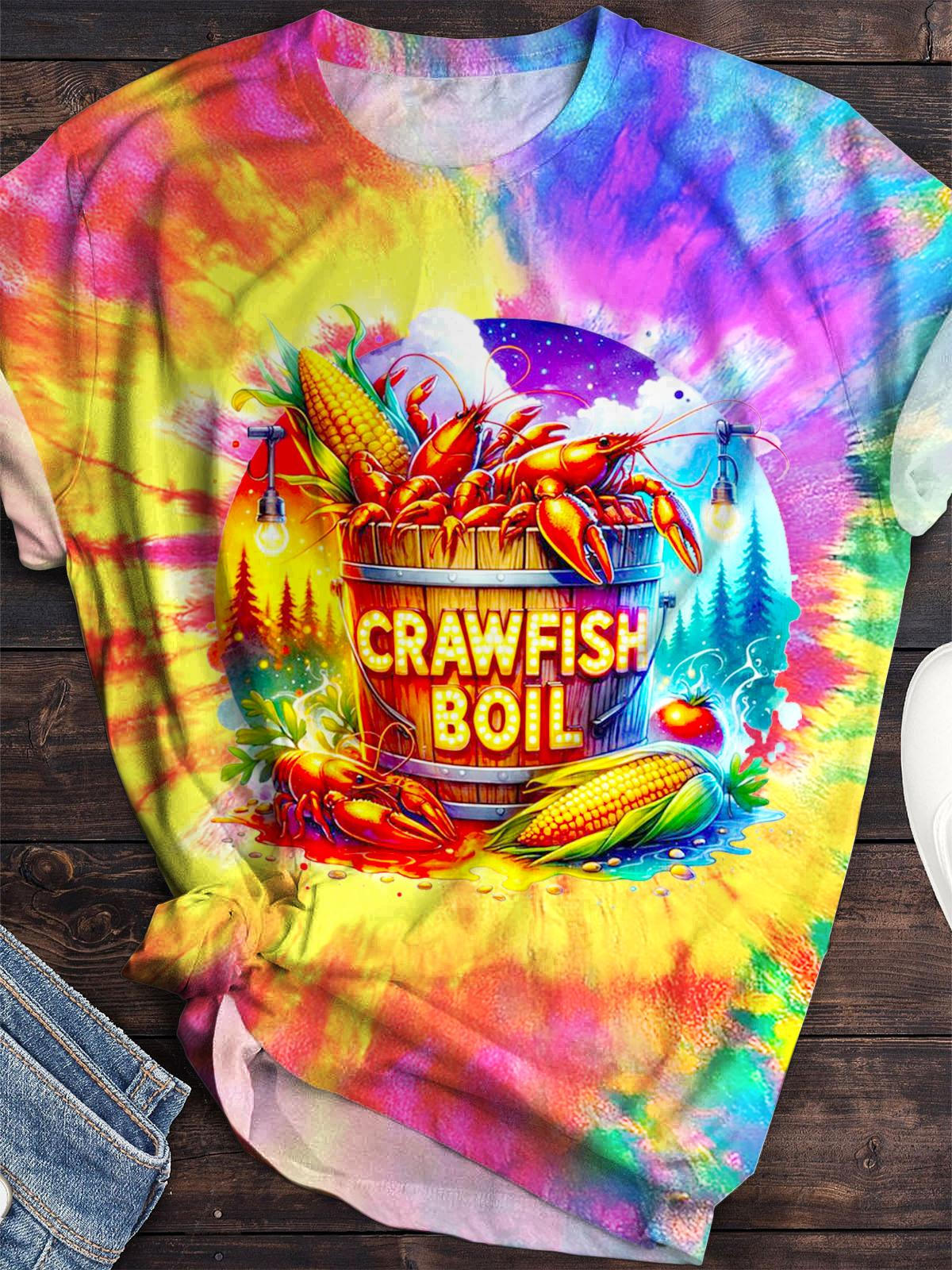 Colorful Cooking Crayfish Printed Crew Neck T-shirt