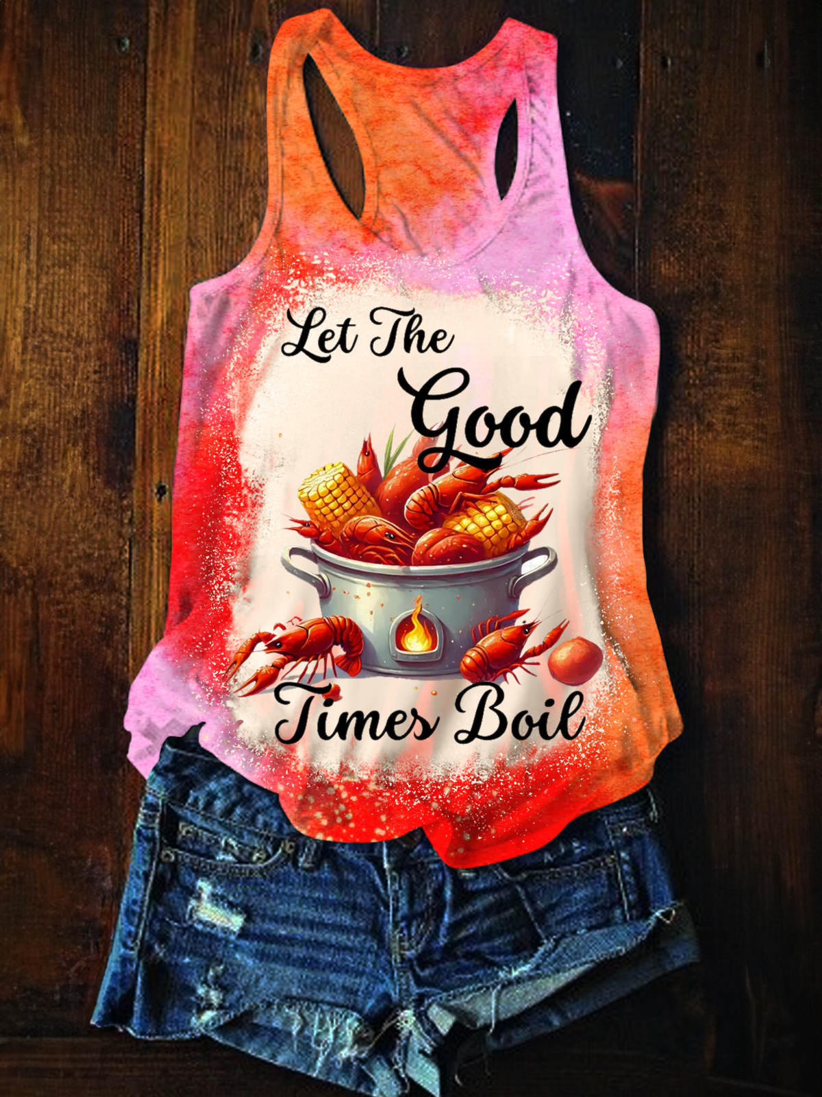 Crawfish Season Let The Good Times Boil Printed Casual Tank Top
