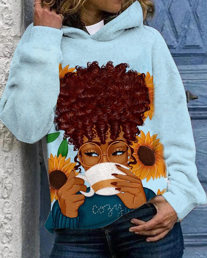 Curly Hair Coffee Girl Long Sleeves Hoodie