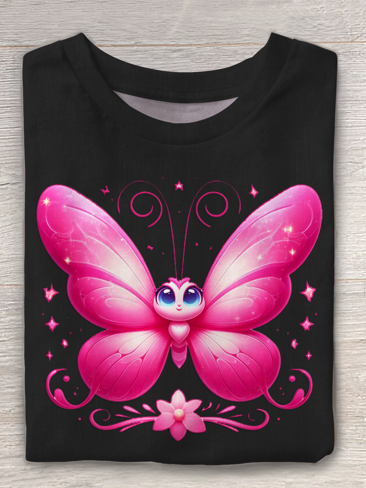 Cute Cartoon Butterfly Print Crew Neck T-shirt