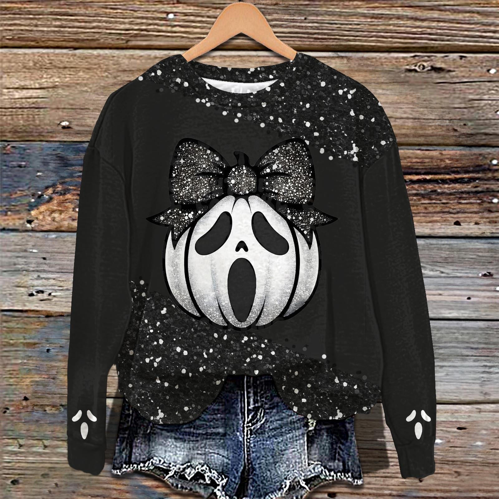 Dark Halloween Pumpkin Printed Long Sleeve Casual Top