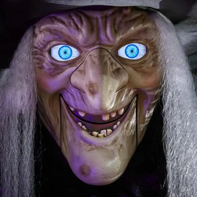- Life-size witch figure adds a haunting effect to your spooky-themed gathering