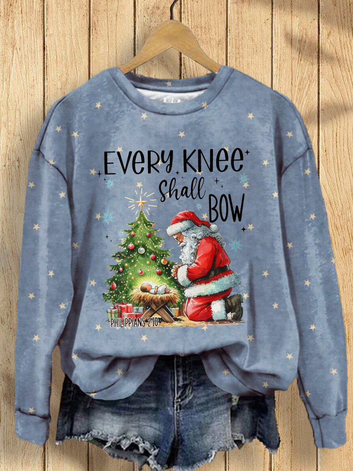 Every Knee Shall Bow Christmas Print Long Sleeve Top