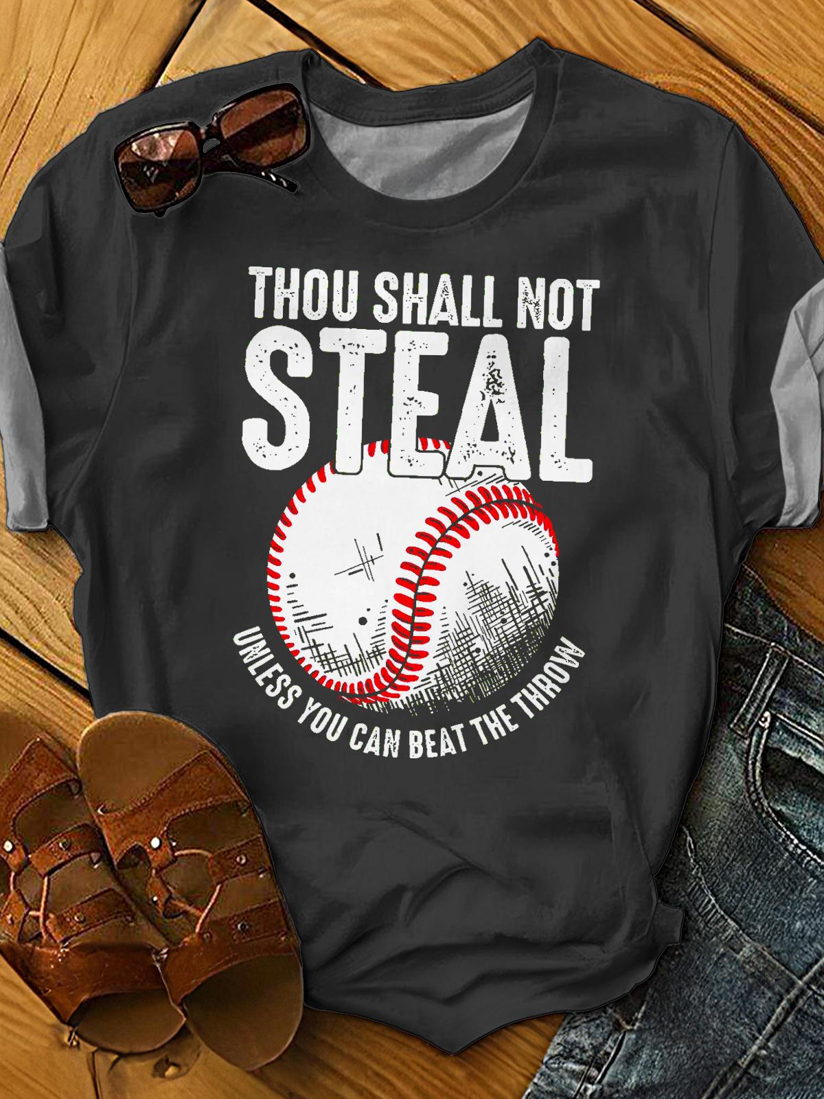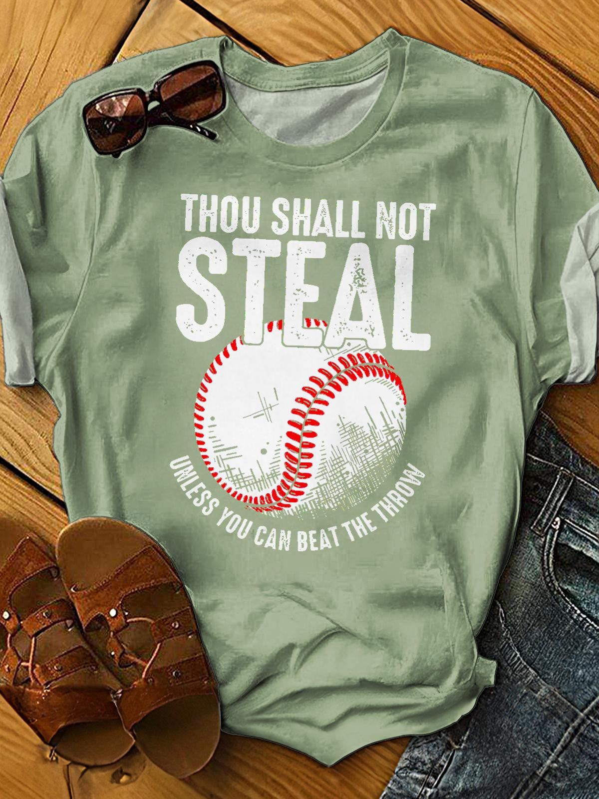 Fun Baseball Vintage Print Crew Neck T-shirt
