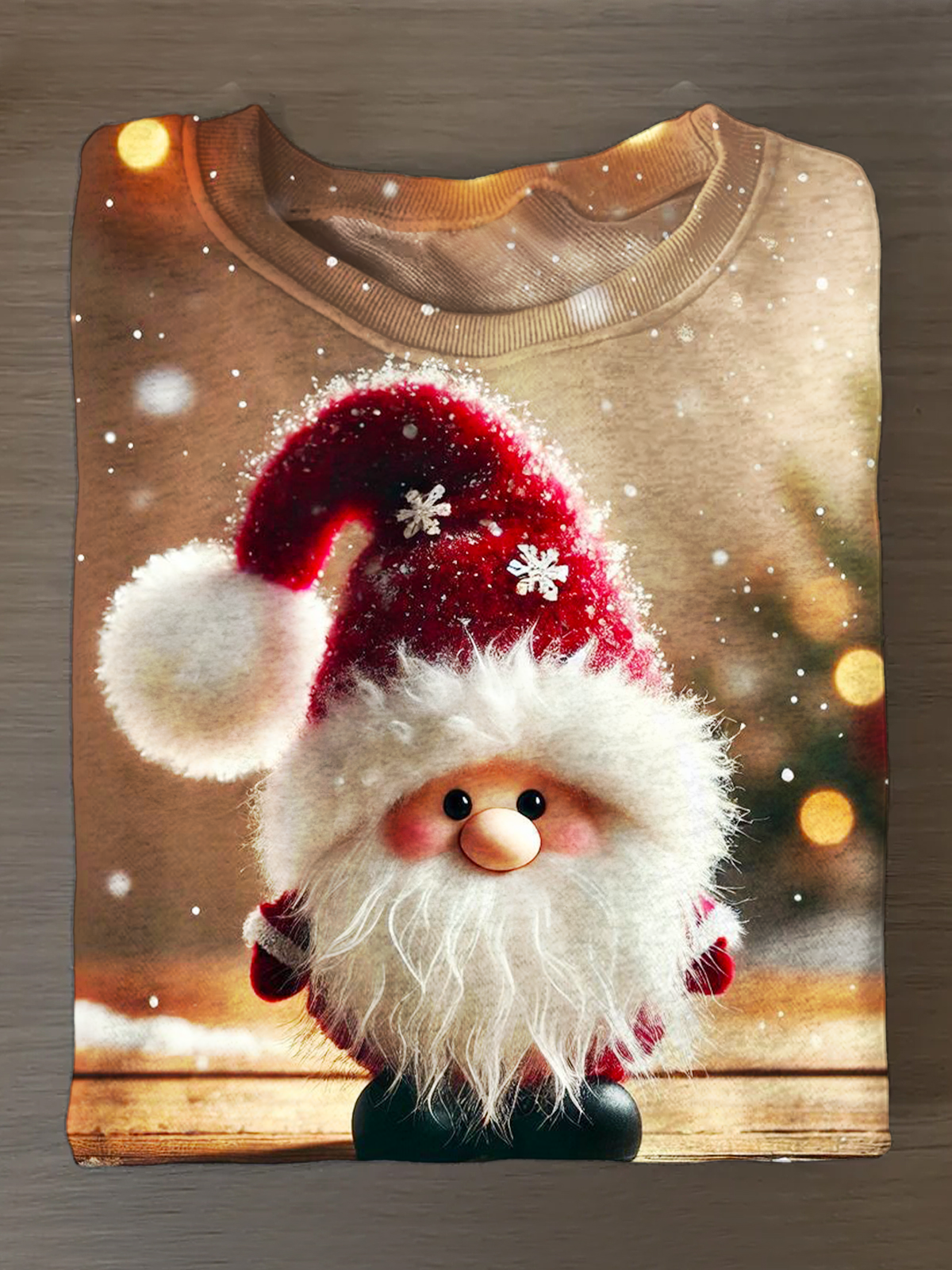 Fun Christmas Gnome Printed Long Sleeve Casual Top