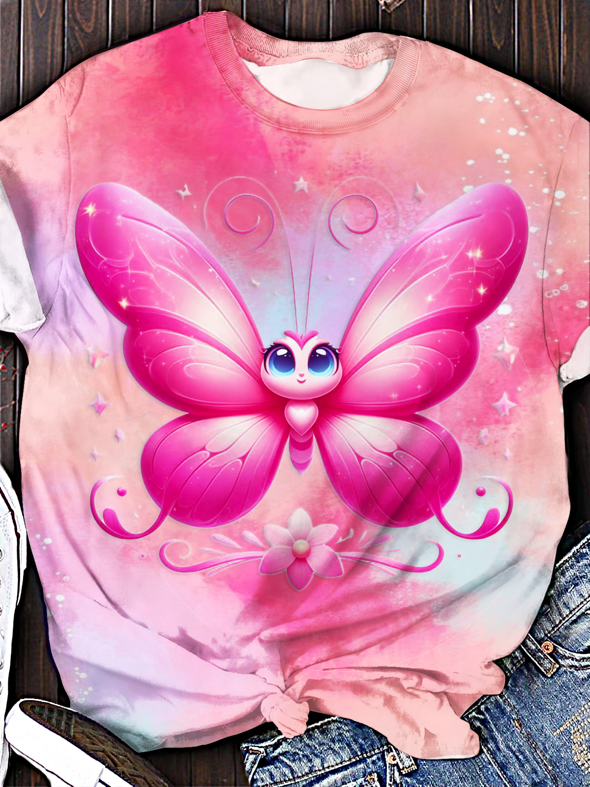 Funny Cartoon Butterfly Crew Neck T-shirt