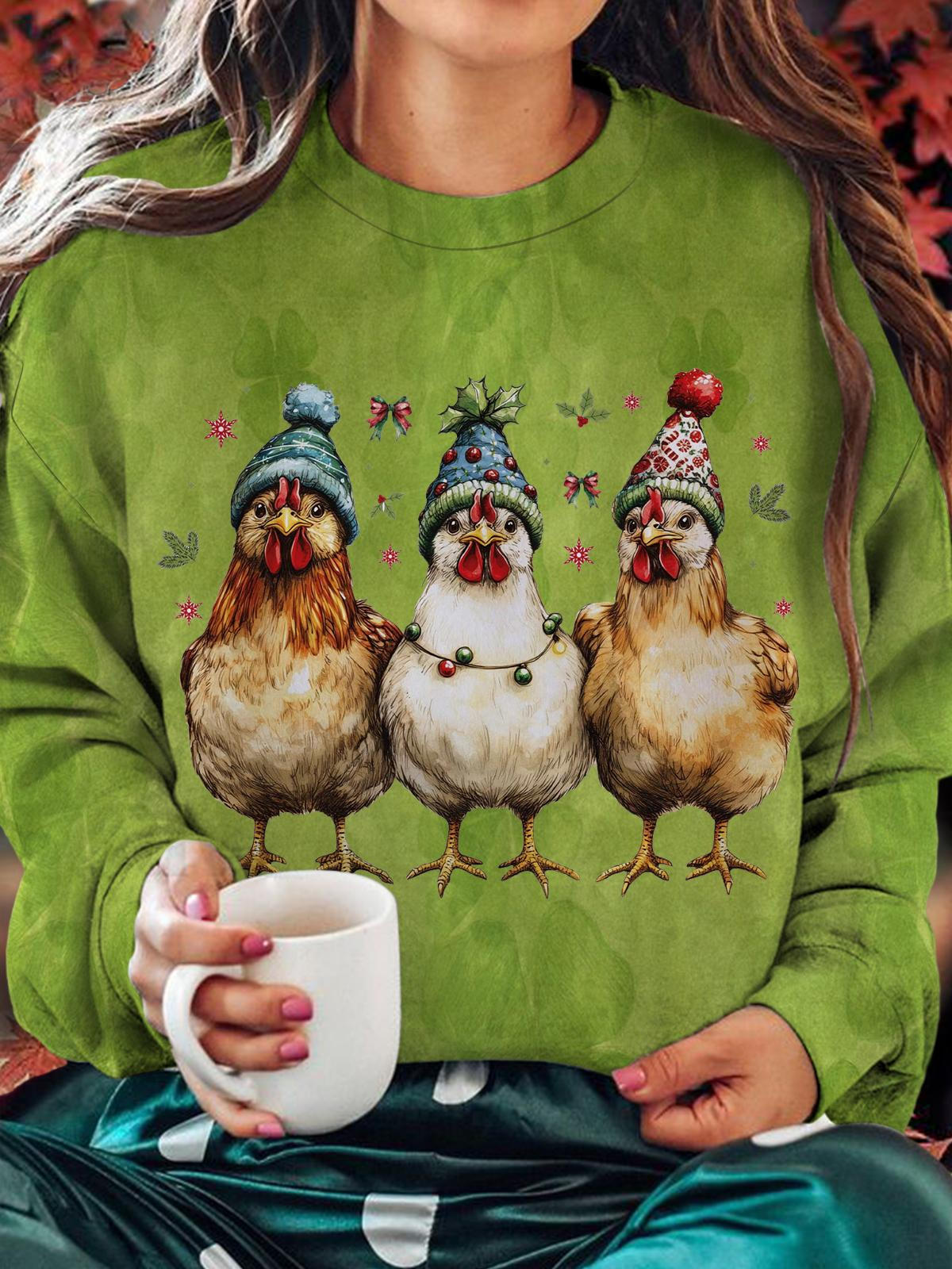 Funny Chicken Christmas Printed Long Sleeve Casual Top