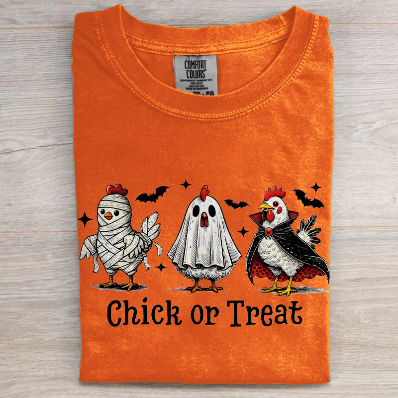 Funny Halloween Chicken Chick or Treat Washed Cotton Crew Neck T-Shirt