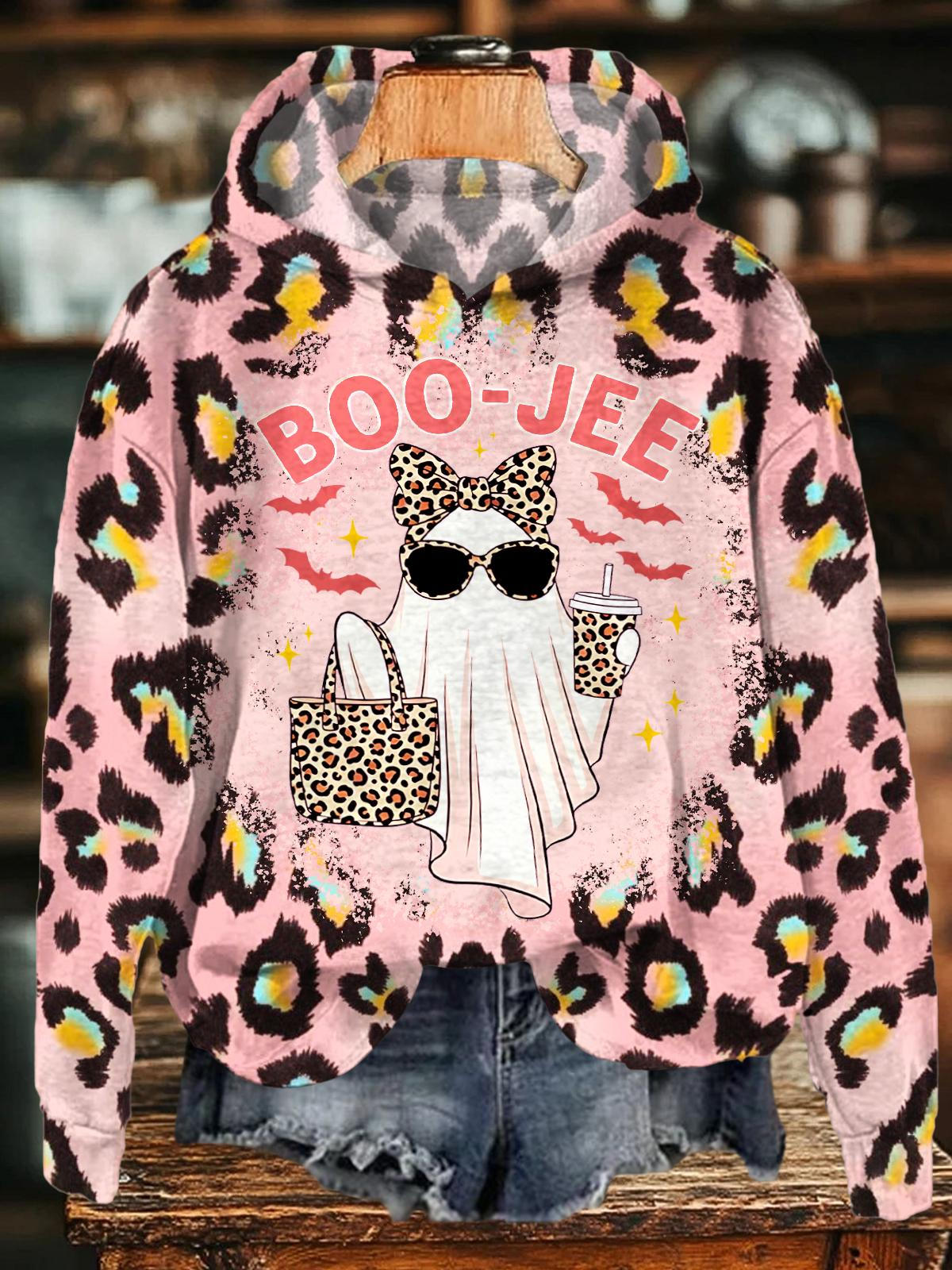 Halloween Leopard Ghost Print Long Sleeve Printed Hoodie