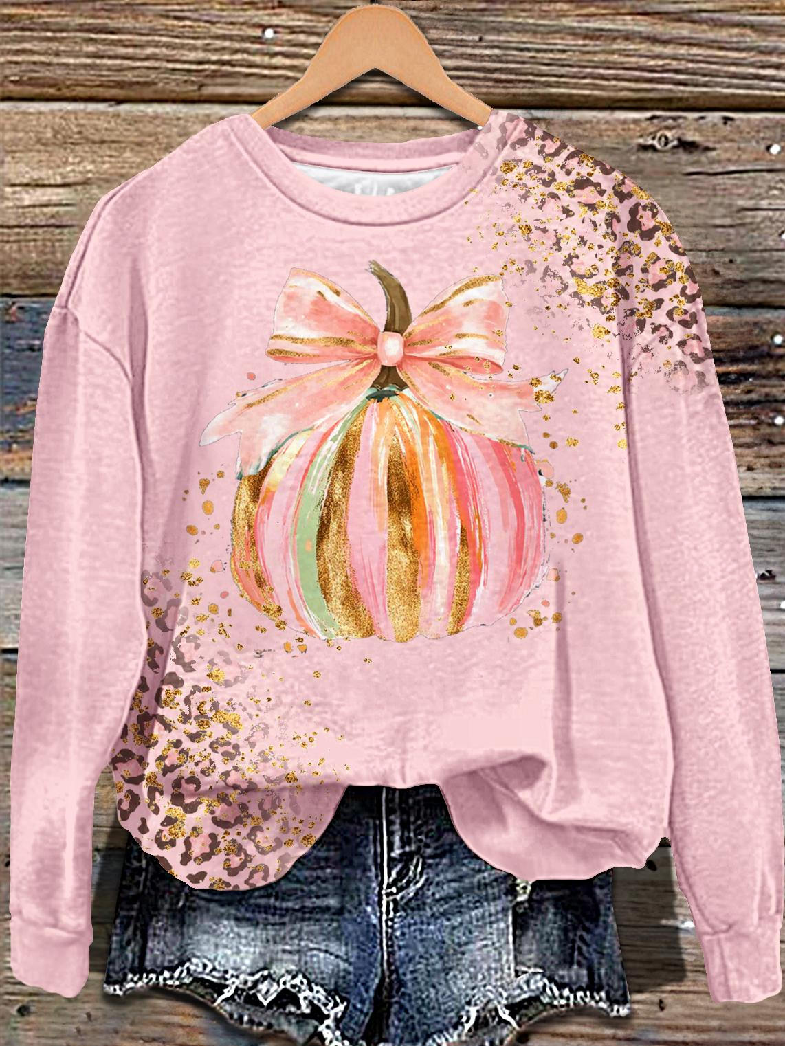 Halloween Leopard Print Halloween Pumpkin Long Sleeve Casual Top
