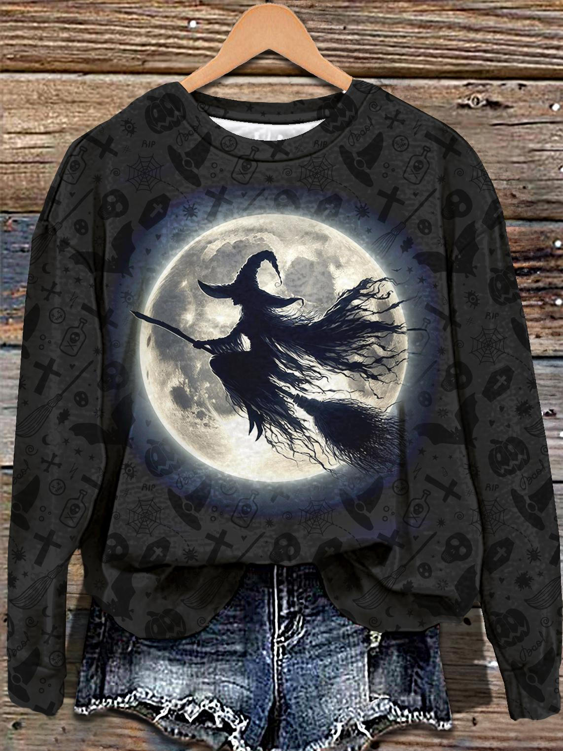 Halloween Witch Print Long Sleeve Casual Top