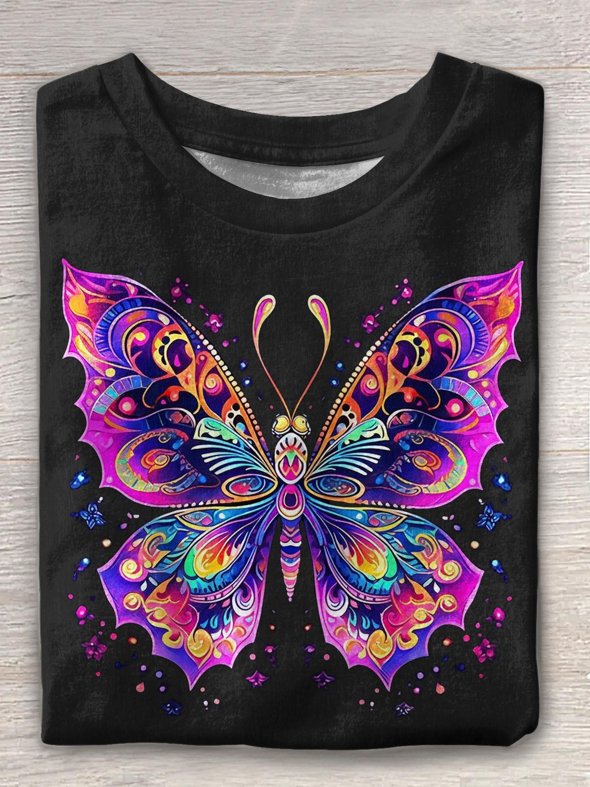 Hippie Butterfly Print Crew Neck T-shirt