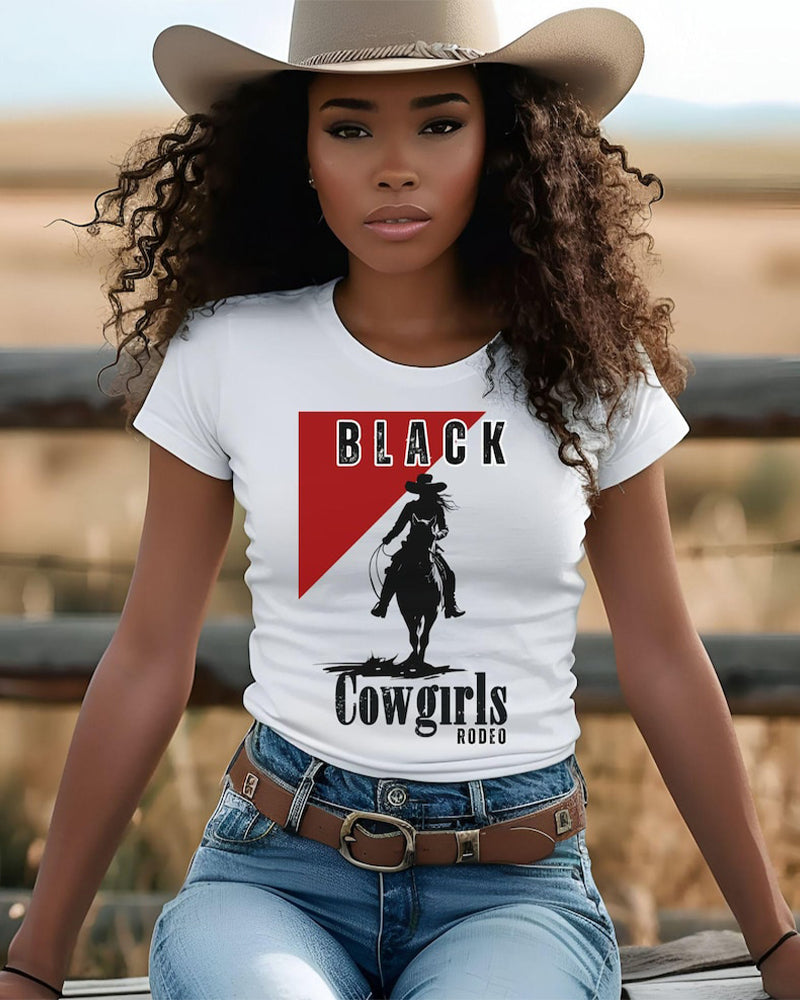 I Am Black Cowgirl Rodeo Crew Neck Short Sleeve Cotton T-shirt