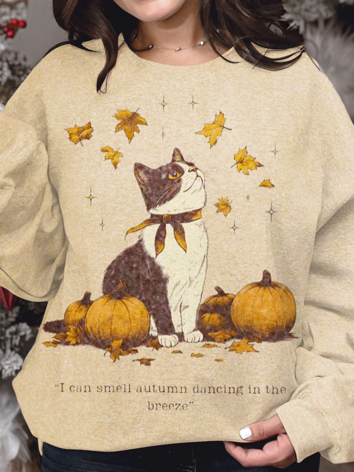 I Can Smell Autumn Dancing In The Breeze Printed Long Sleeve Casual Top
