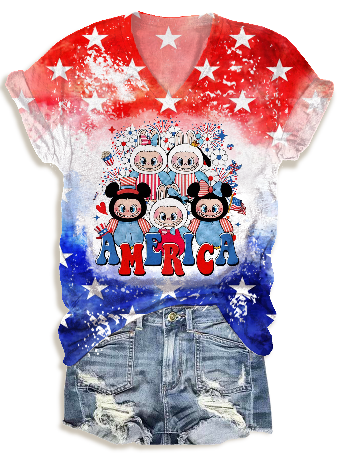 Independence Day Cute Cartoon Red White Blue 4th of July V-neck T-Shirt