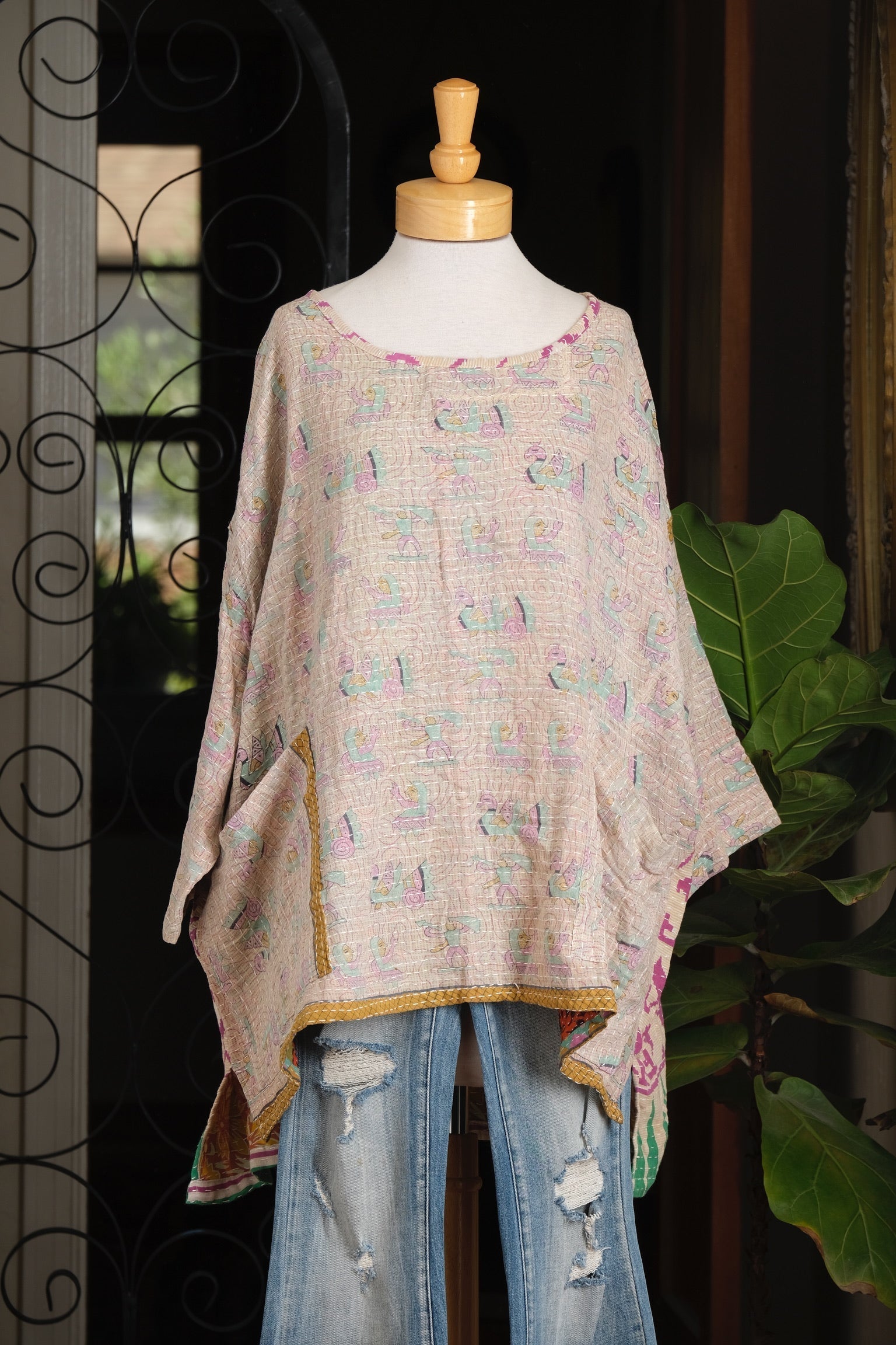 Kantha Pullover in Birds and Ladies