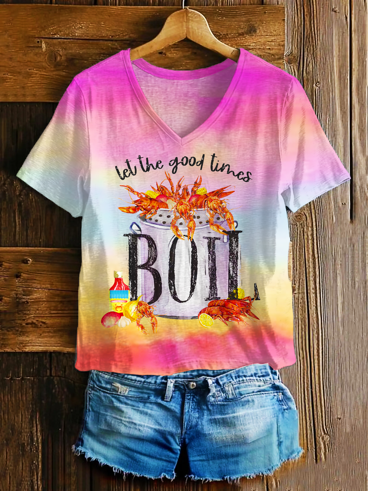 Let The Good Times Boil Crawfish Art V-neck T-Shirt