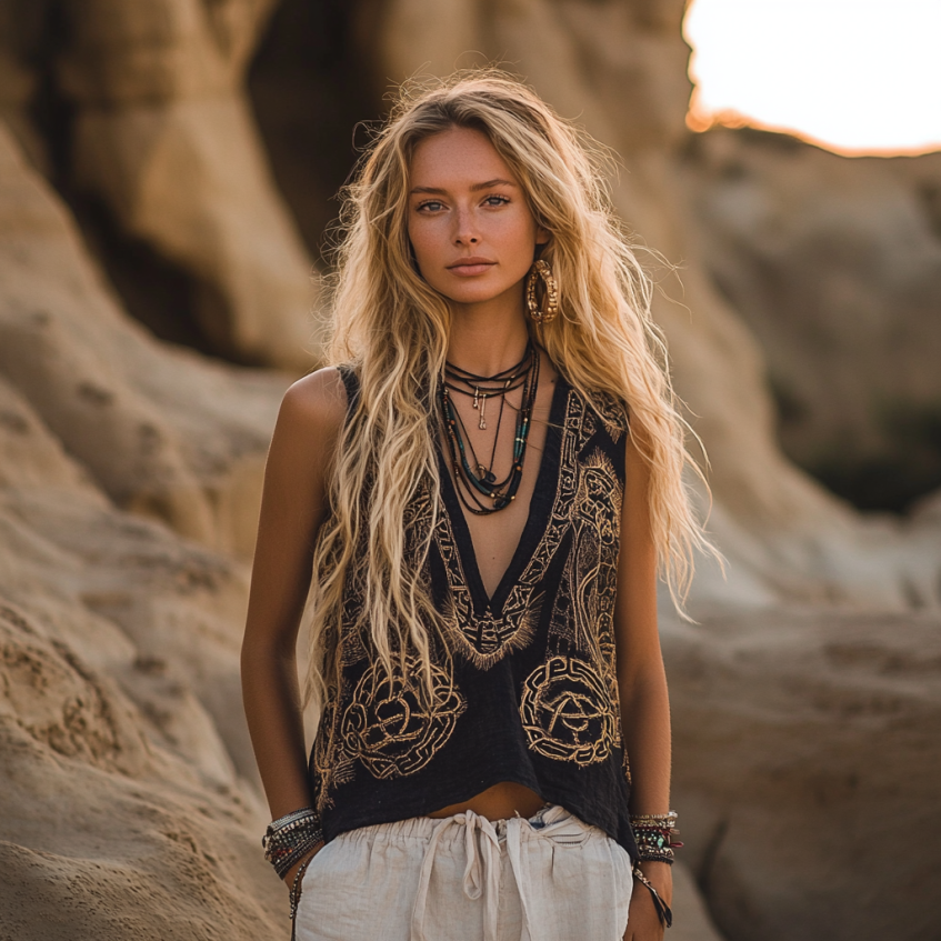 Women's Viking Tribal And Celtic Knot Pattern Art Linen Sleeveless Top