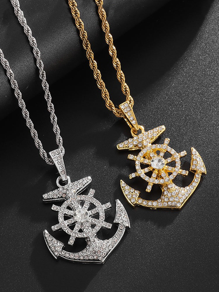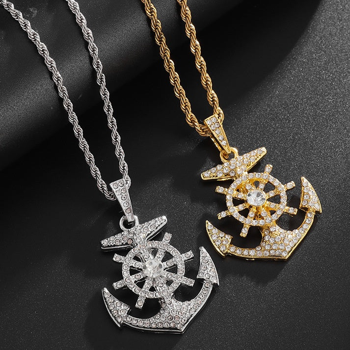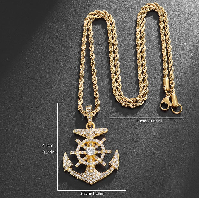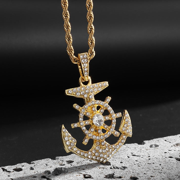 Men's Hip Hop Zircon Anchor Pendant Necklace