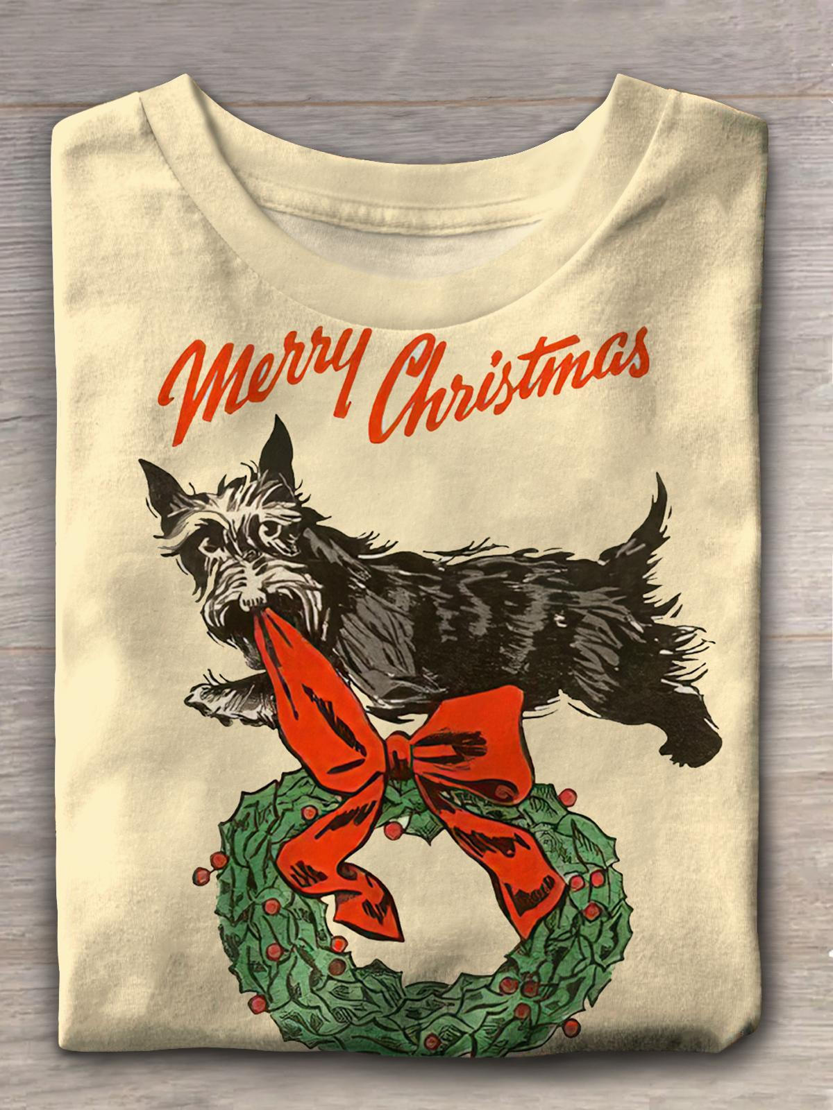 Merry Christmas Cute Puppy Wreath Print T-shirt