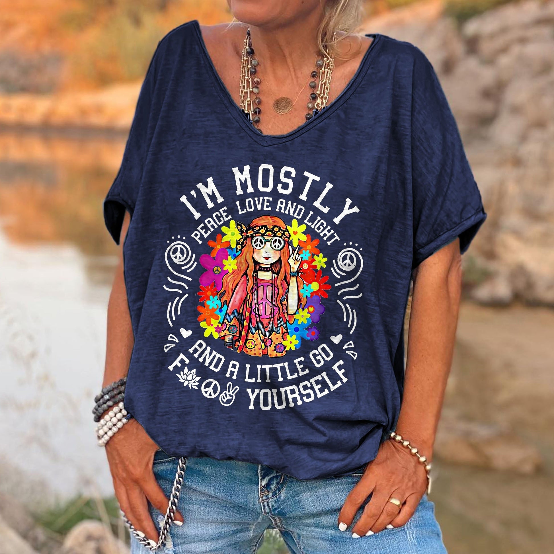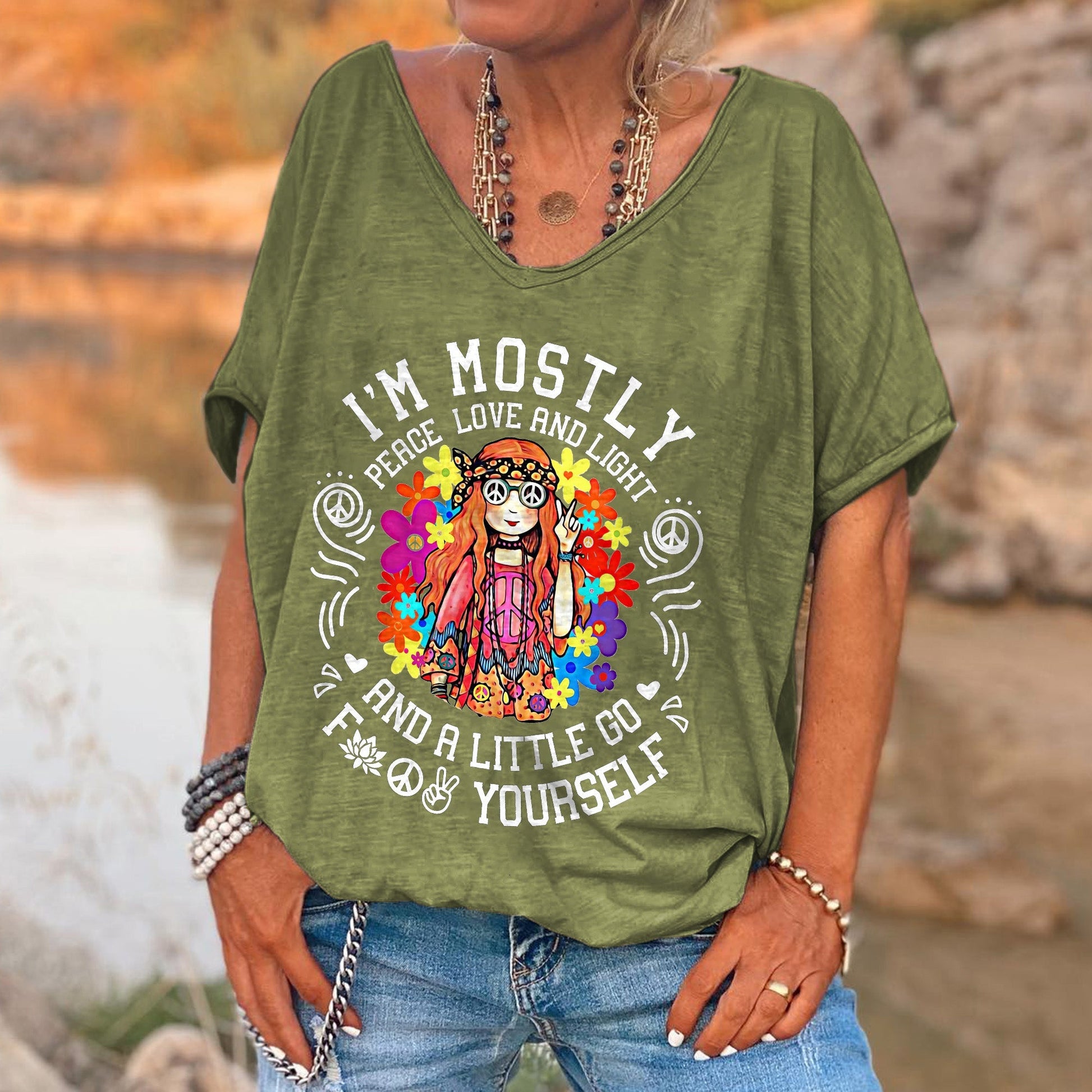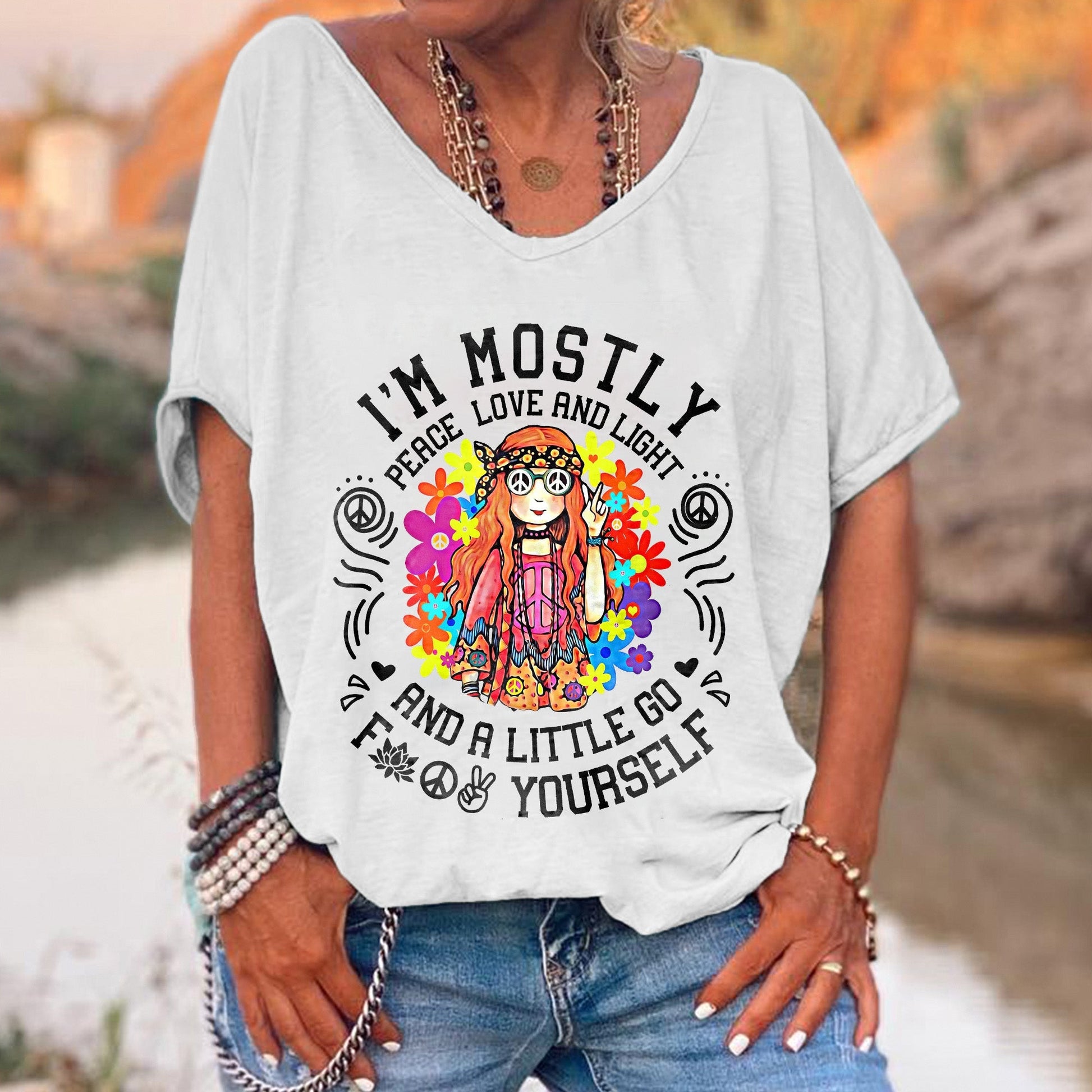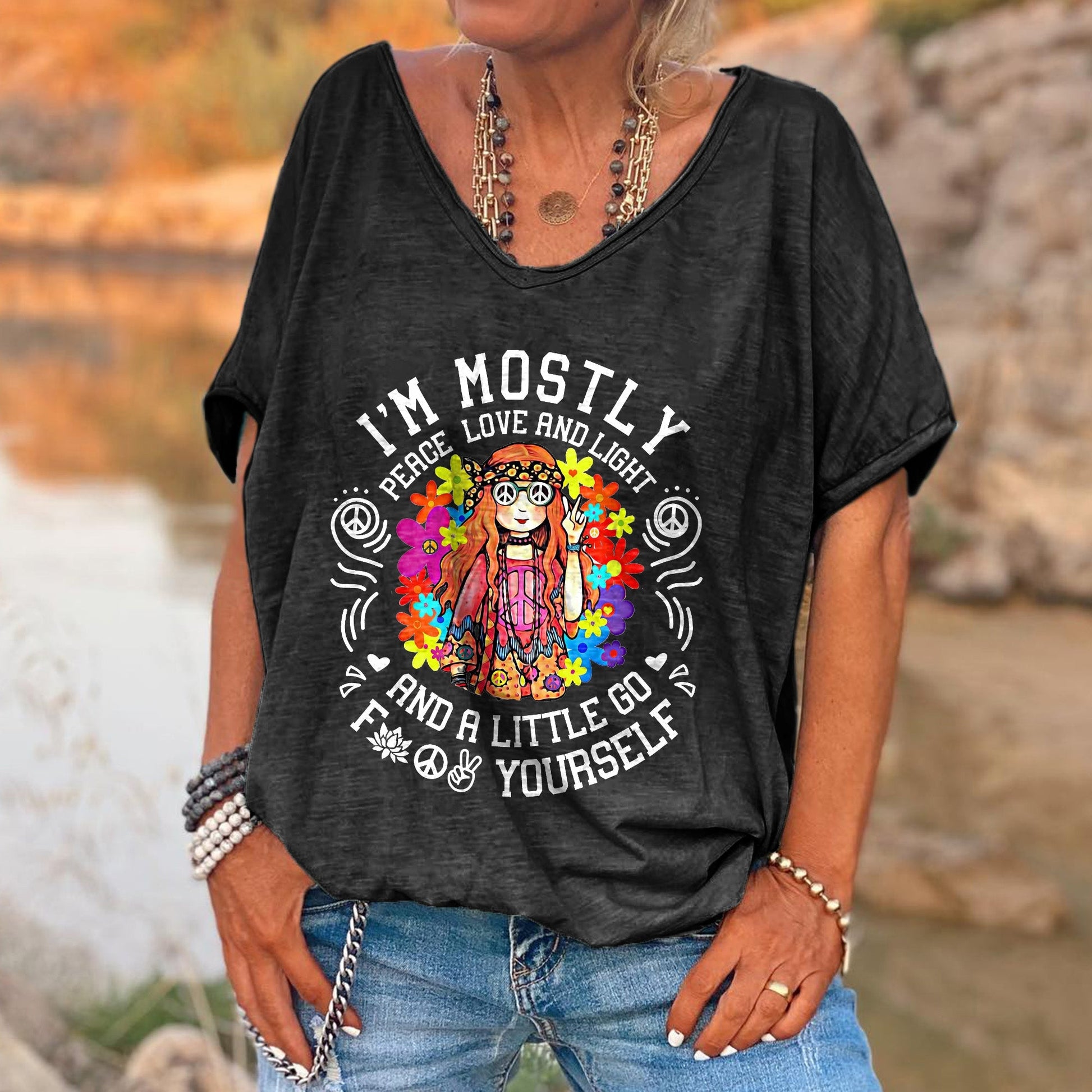 | Product Name | Peace Love And Light Printed Hippy T-shirt | ||