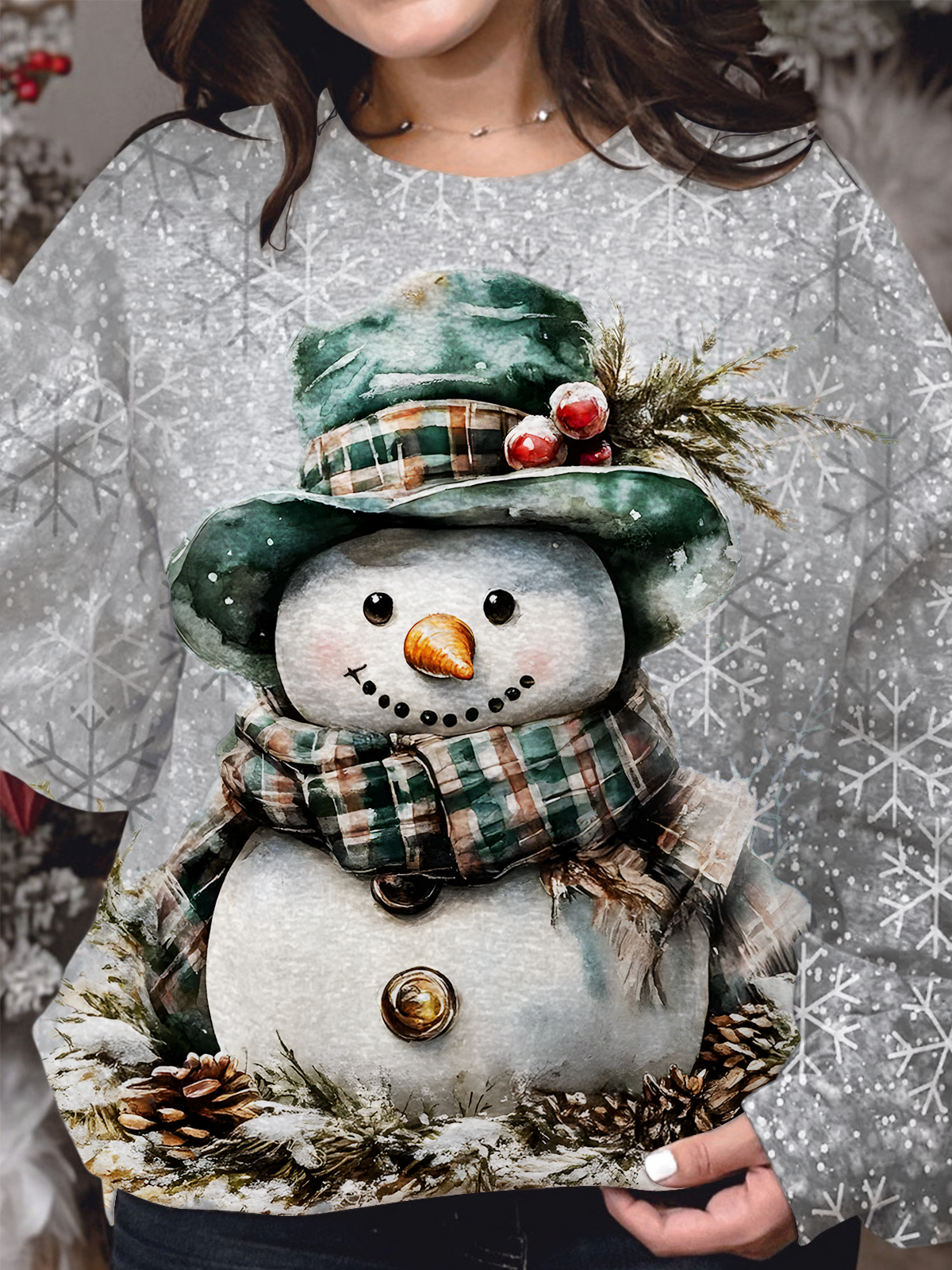 Retro Christmas Snowman Printed Long Sleeve Casual Top
