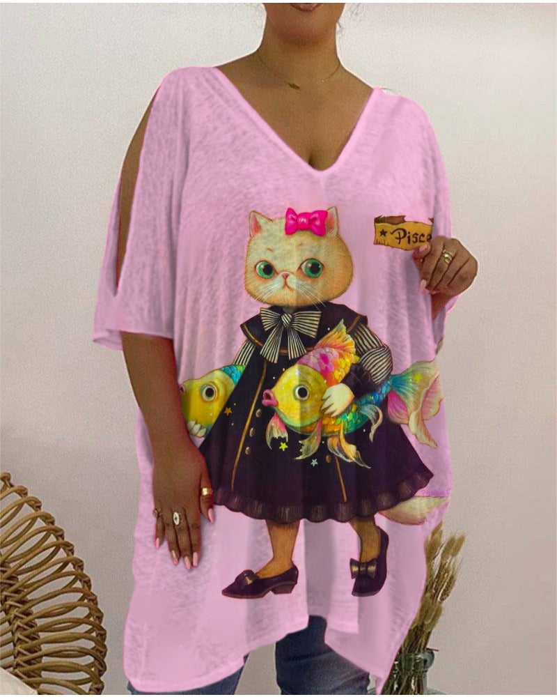 Casual cat print women's casual T-shirt