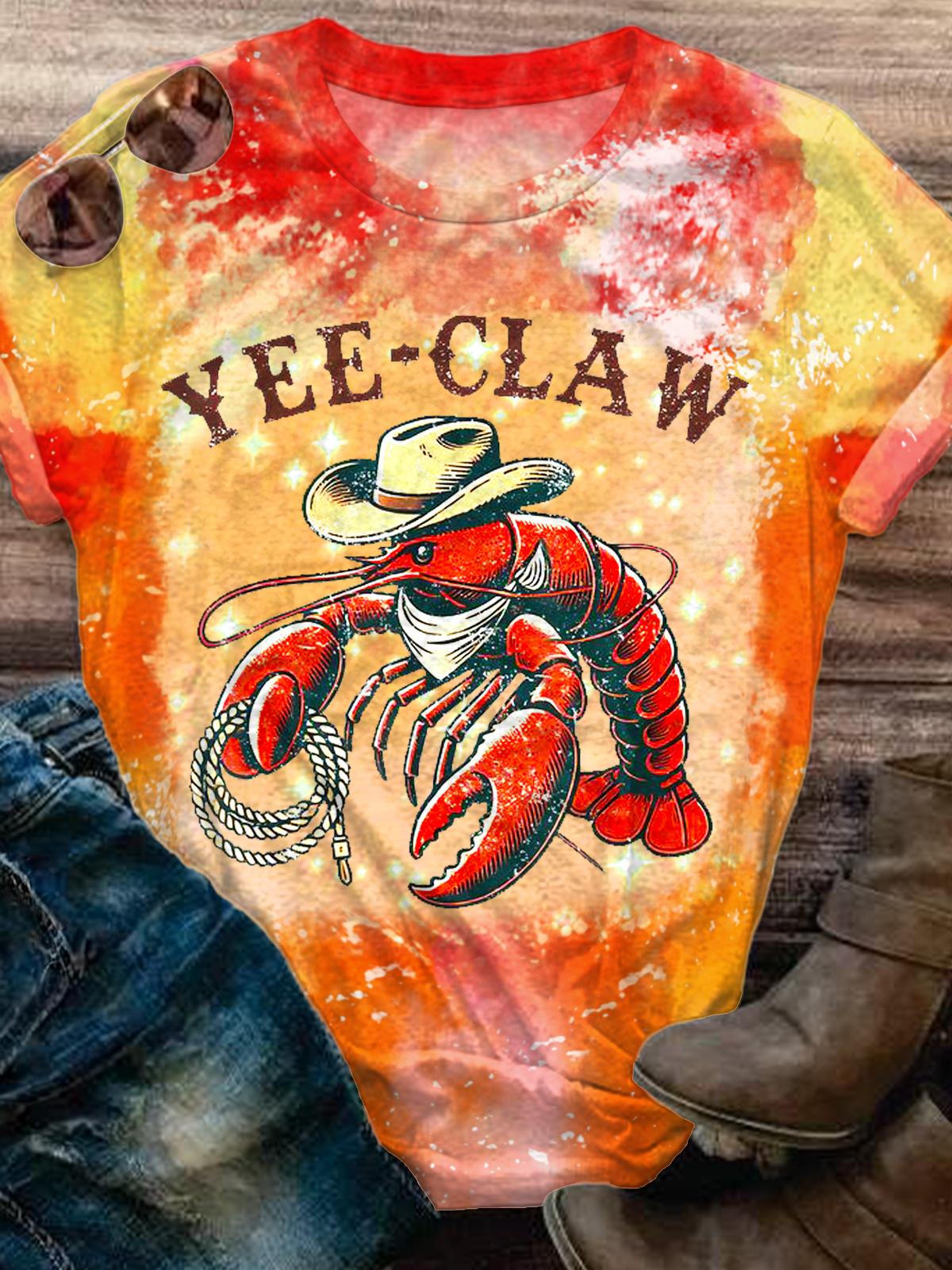 Retro Vacation Crayfish Printed Crew Neck T-shirt