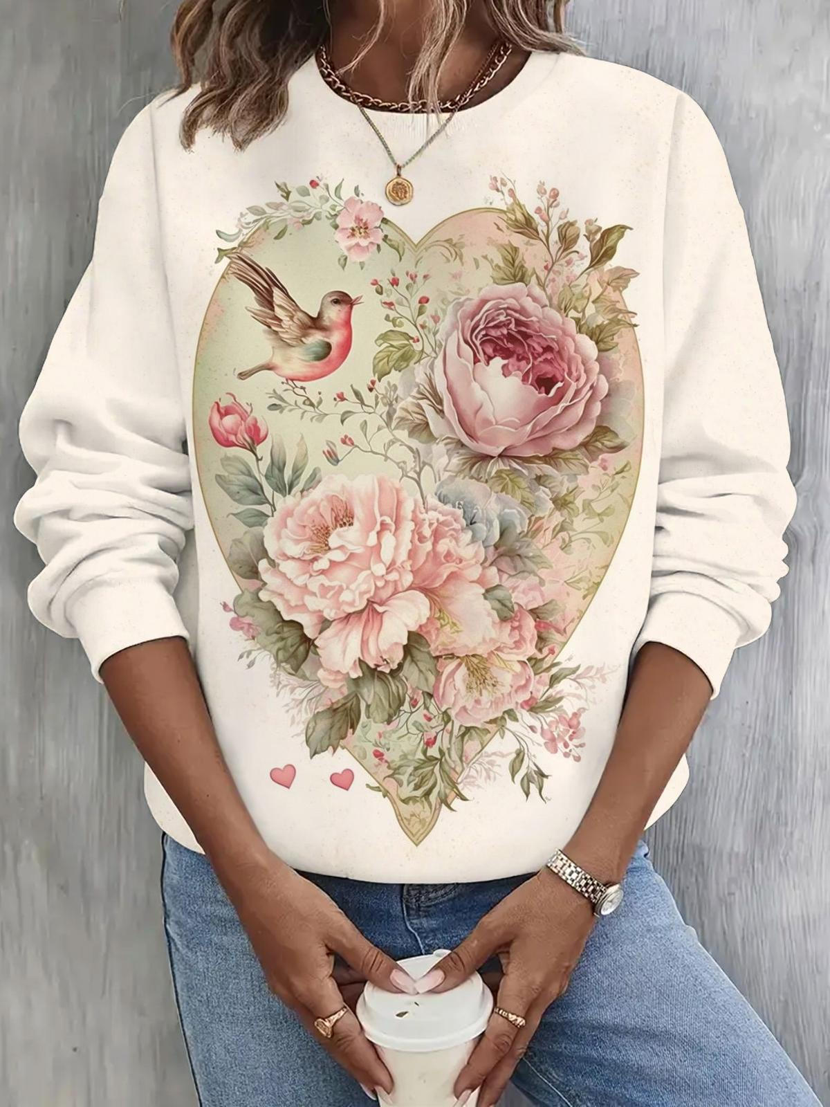 Retro Valentine's Day Floral Long Sleeve Casual Top