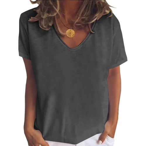 | Product Name | Solid color V-neck short-sleeved plus size women's T-shirt | ||