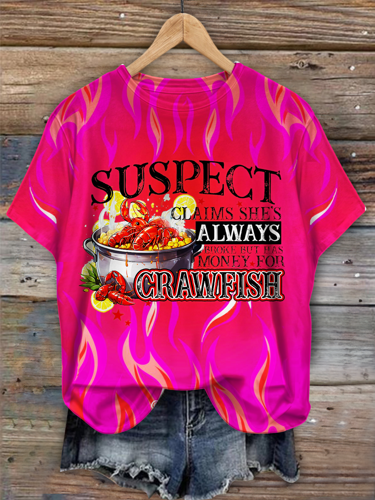 Suspect Claims She's Broke but has Money for Crawfish Crew Neck T-shirt