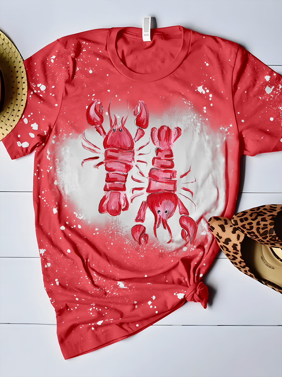 Tie-Dye Crawfish Art Crew Neck T-shirt