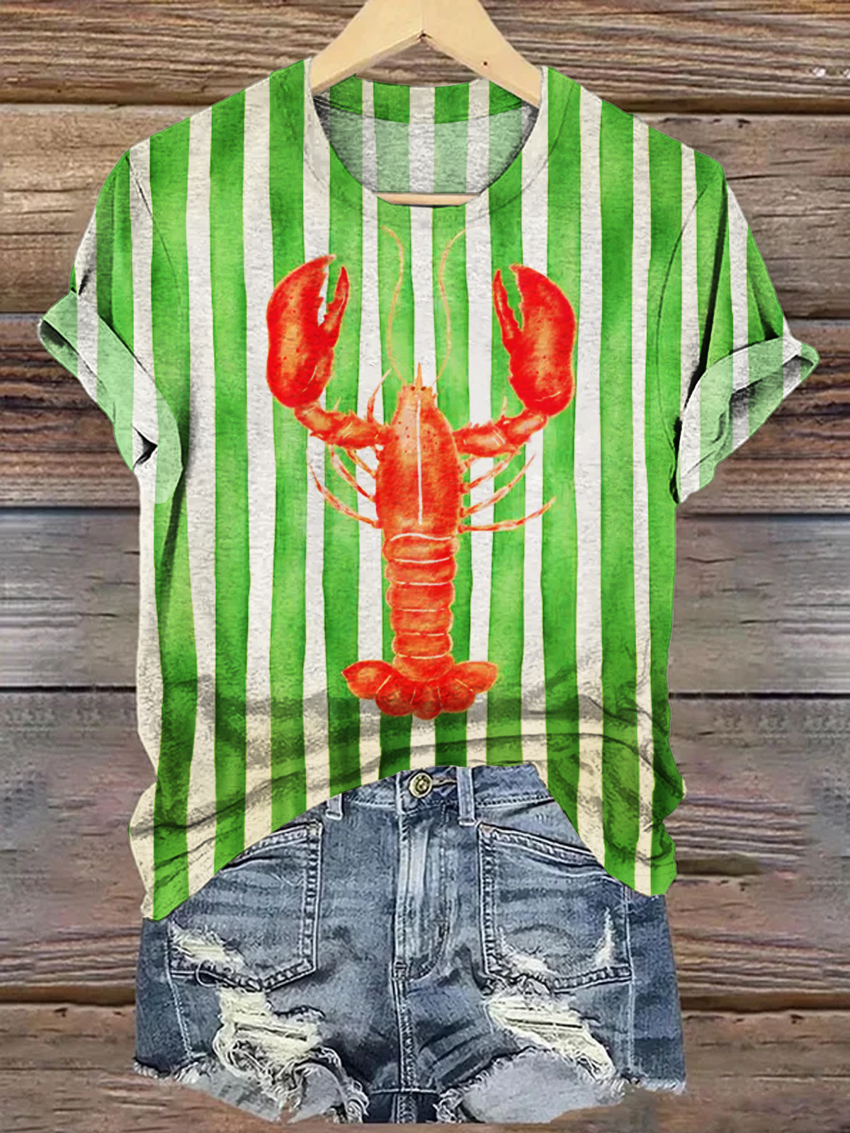 Vacation Striped Crawfish Art Crew Neck T-shirt