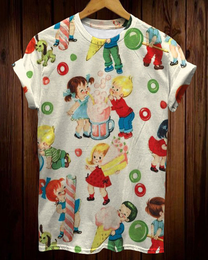Vintage Cartoon Cute Children's Printed Round Neck Short-Sleeved T-Shirt