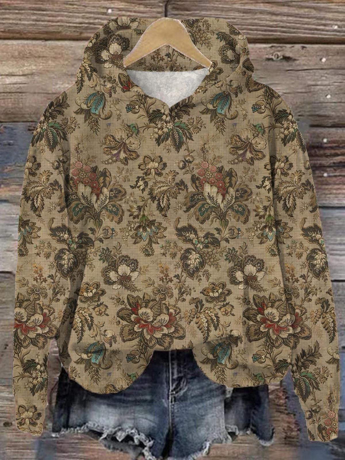 Vintage Floral Print Long Sleeve Printed Hoodie