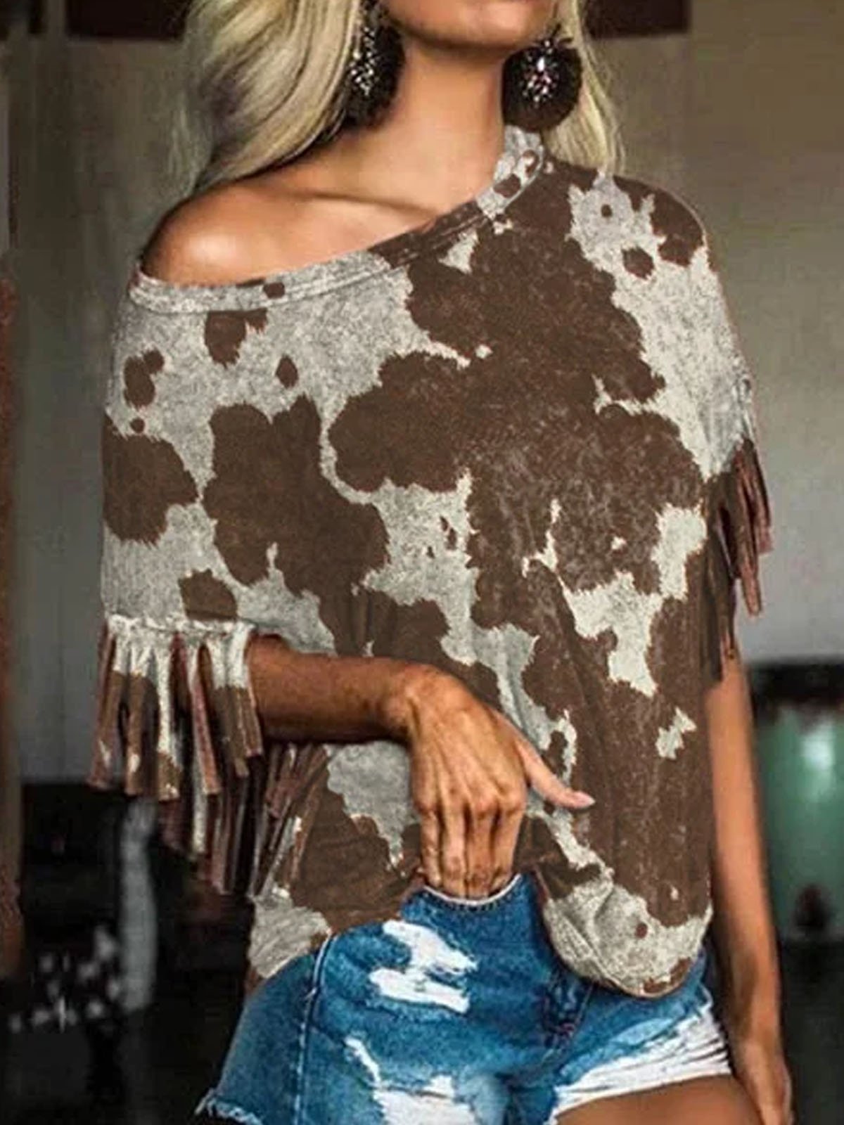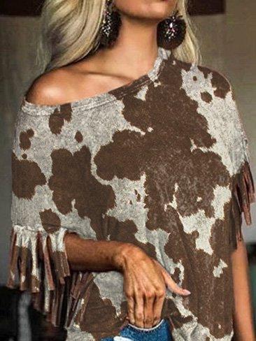 Vintage Printed Short Sleeve Abstract Shirts & Tops