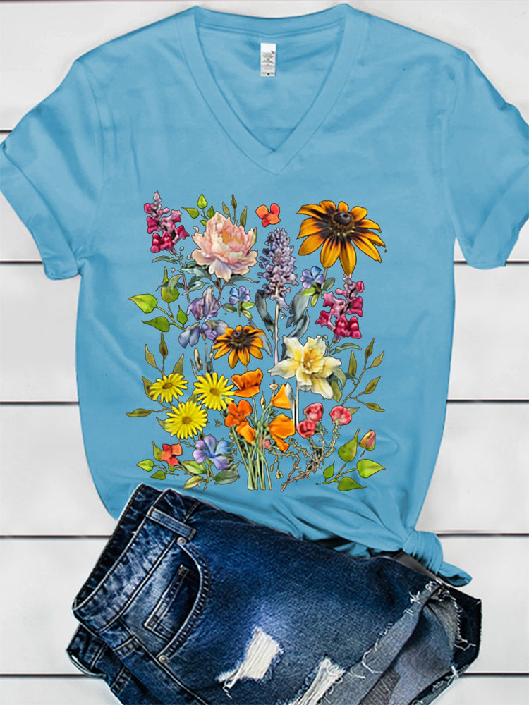 | Product Name | Wildflower Print Women's V-neck T-shirt | ||