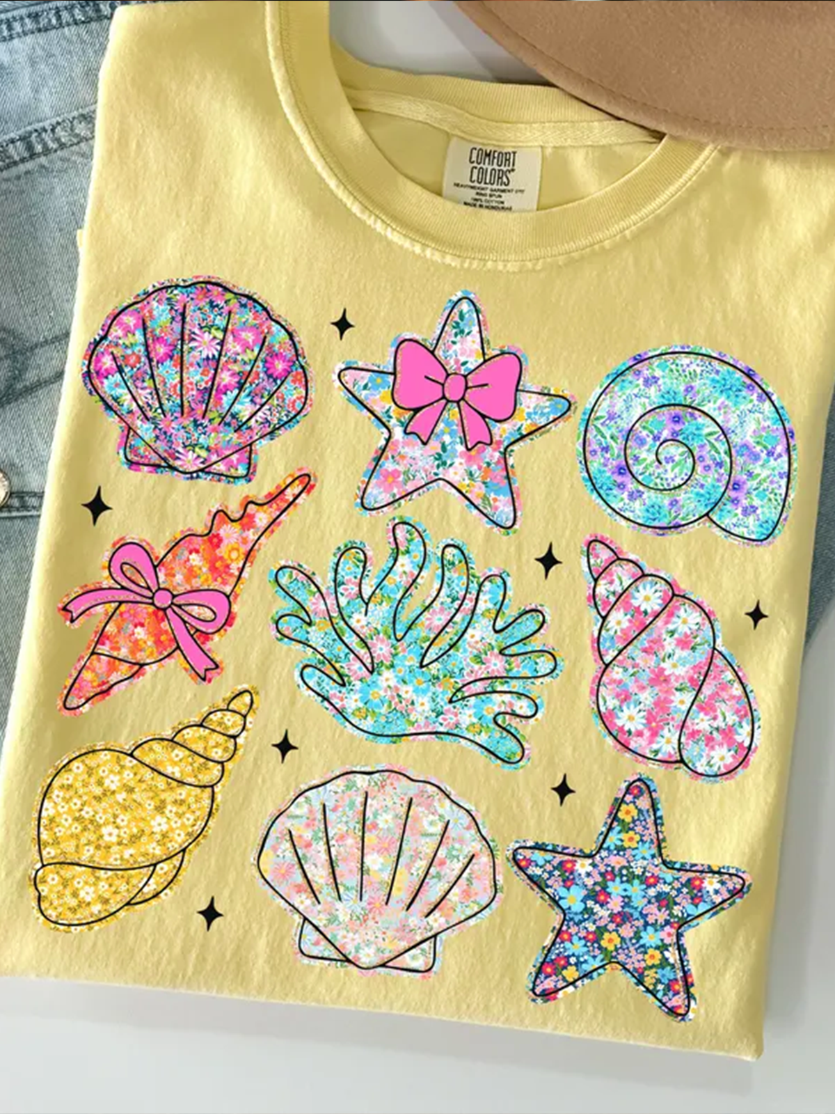 Wildflower Seashell Clam Summer Crew Neck T-shirt