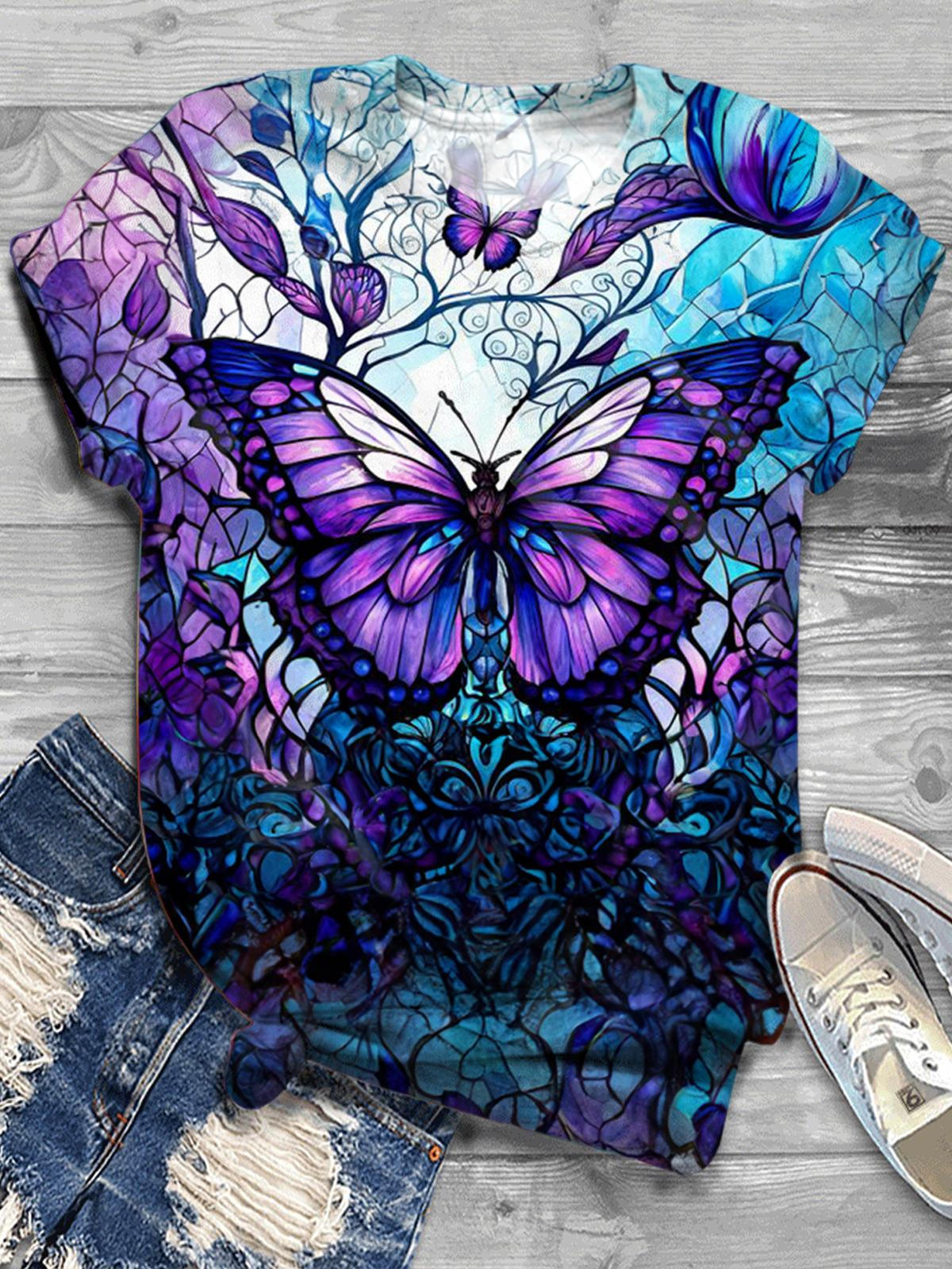 Women's Butterfly Print Short Sleeve Top