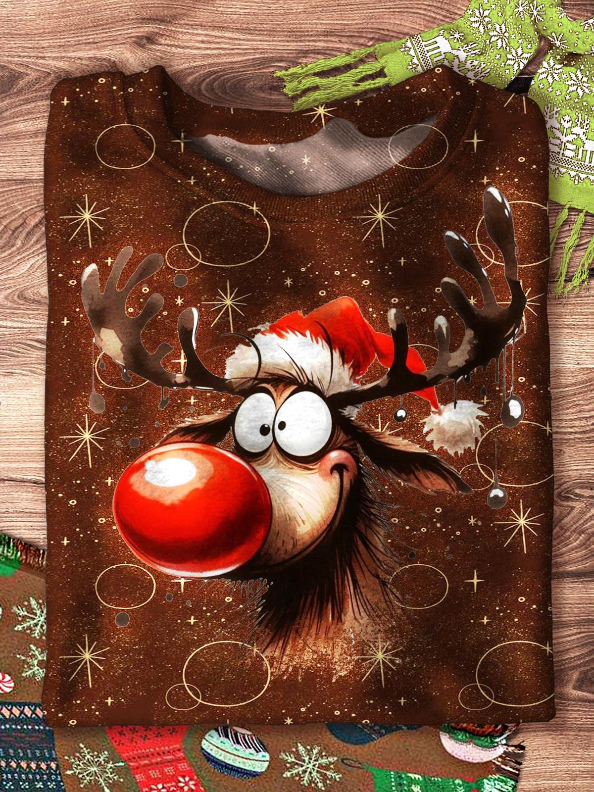 Women's Christmas Fun Reindeer Printed Long Sleeve Casual Top