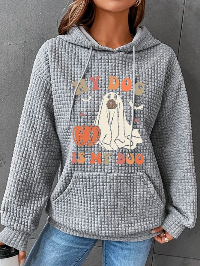 Women's My Dog Is My Boo Halloween Dog Waffle Hooded Sweatshirt