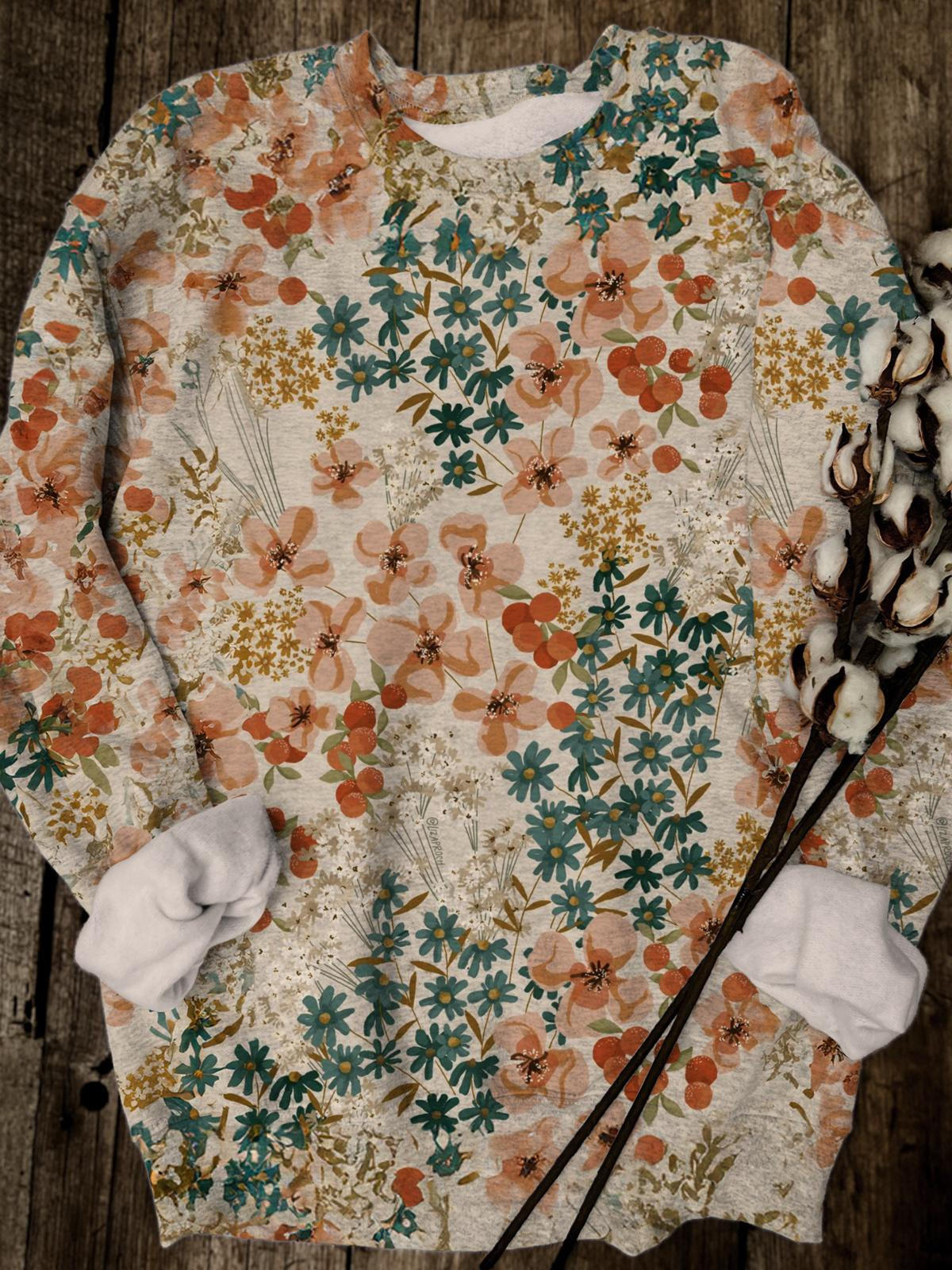 Women's Retro Flowers Printed Long Sleeve Casual Top